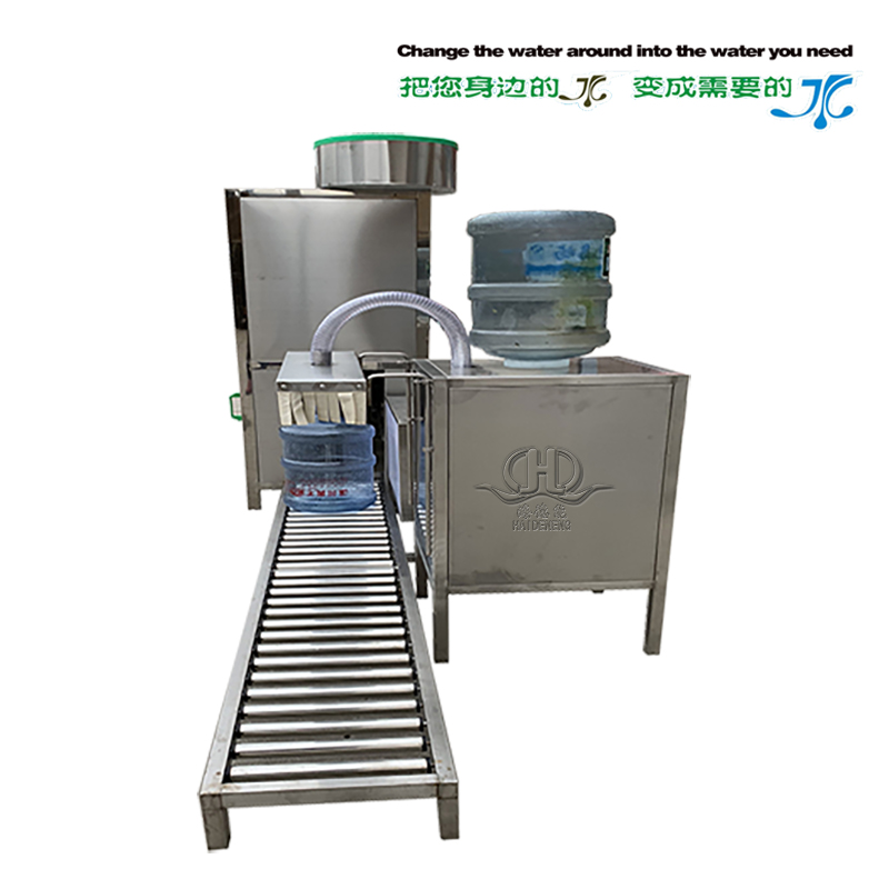 1、微電腦自動洗灌裝機是全自動灌裝純凈水的專用設備,也可用于蒸餾水、礦泉水和其它無菌液體的灌裝。該設備集洗瓶、灌裝、套蓋、壓蓋和成品送出為一體流水線作業,有效地防止純凈水在灌裝過程中可能發生的二次污染。