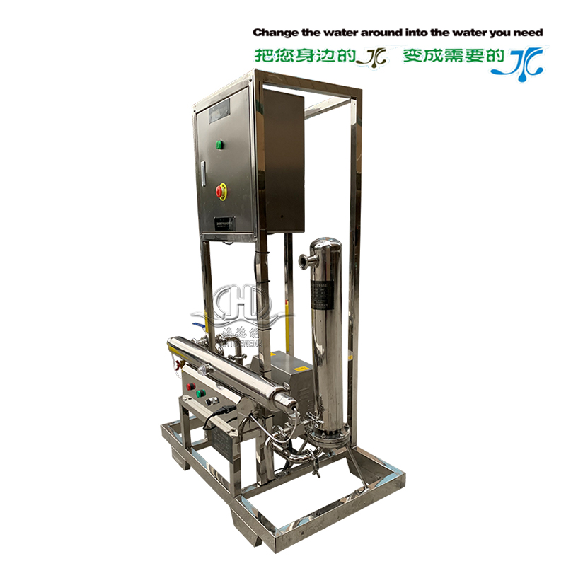 純化水分配系統(tǒng)消毒方式是臭氧消毒,因此需要配置雙板式換熱器(夏季冷卻作用)或是臭氧發(fā)生器以及紫外燈等設備。純水儲罐的大小應該符合純水的峰值流量,它和純水機產(chǎn)水能力有一定平衡關(guān)系。循環(huán)泵的流量應該大于峰值流量和回流流量之和。在線相關(guān)儀表檢測水質(zhì),一旦水質(zhì)低于客戶要求即可報警。