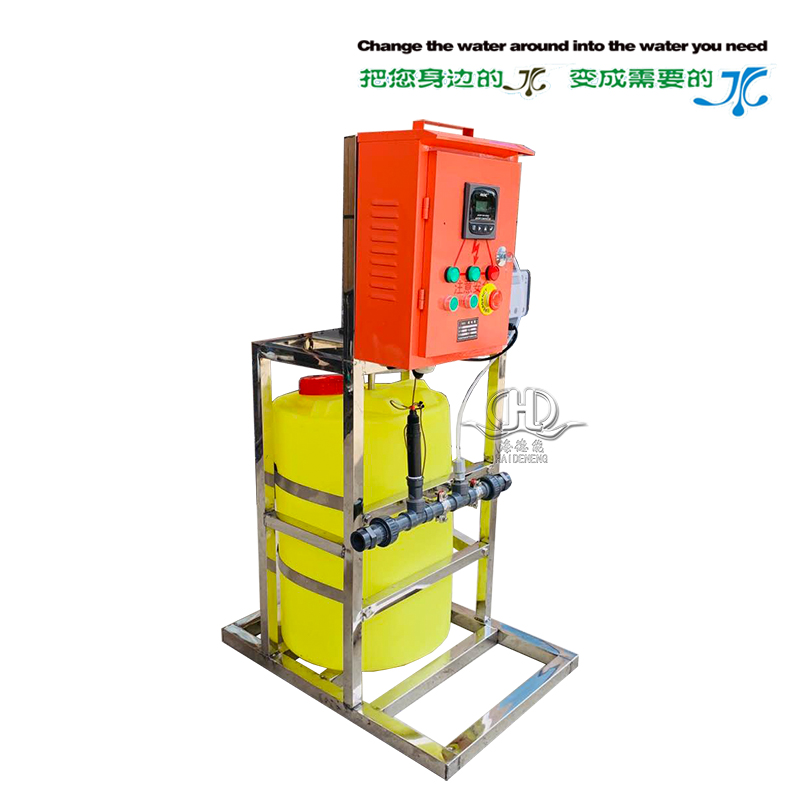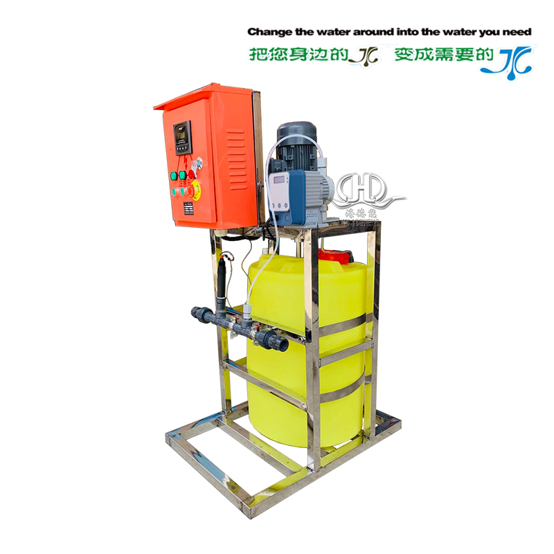 2、加藥裝置通過不同的工藝設(shè)計(jì),精確配置各類固體和液體的化學(xué)藥品的溶液,再用計(jì)量泵準(zhǔn)確投加,以達(dá)到各種設(shè)計(jì)要求。如除垢、除氧、混凝、加酸、加堿等。