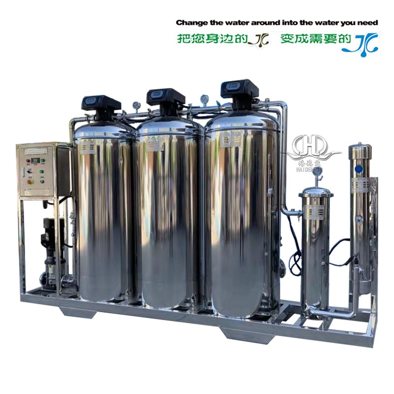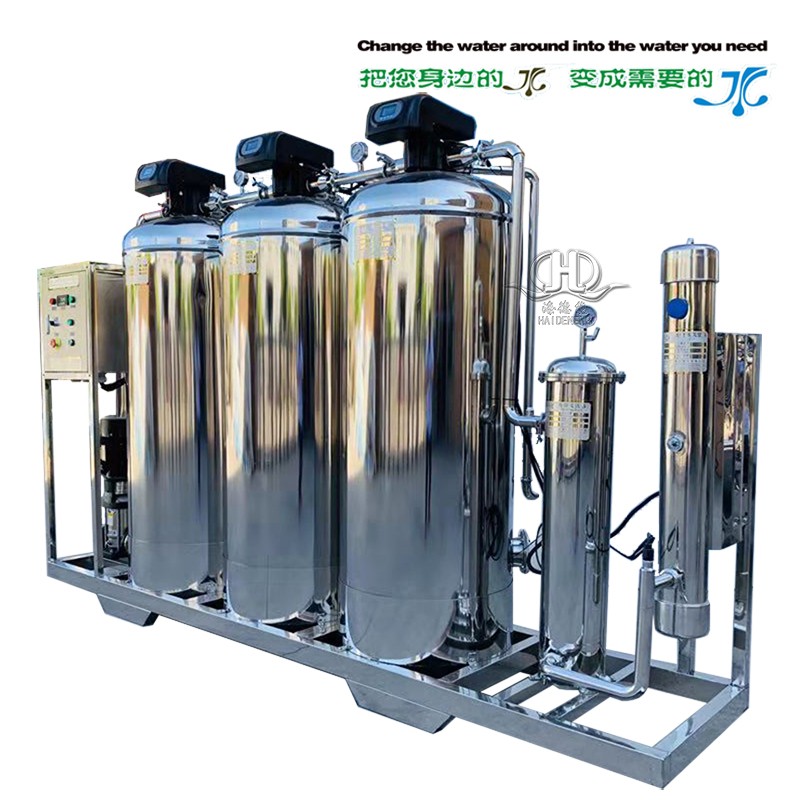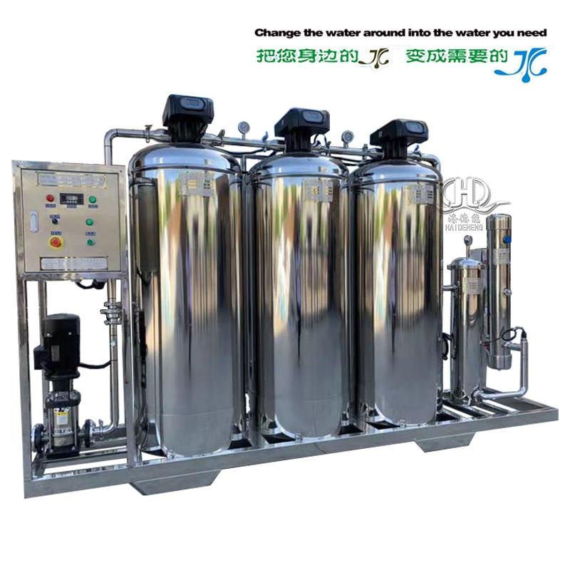 1、目前該設備采取全自動多路閥閥控制反沖洗,設備全不銹鋼制做,原理:采用多介質深層過濾,活性炭吸附源水中大量的余氯異味,再經(jīng)過軟化水器鈉離子交換去除源水中的總硬度,并經(jīng)過1UM的精密過濾器過濾使出水達到更優(yōu)于自來水標準最后用進口飛利普紫外線UV滅菌器滅菌。得出水達到生活及配料的軟水要求.因此整機裝置簡單,操作、維護和自控簡便,現(xiàn)場安全衛(wèi)生。