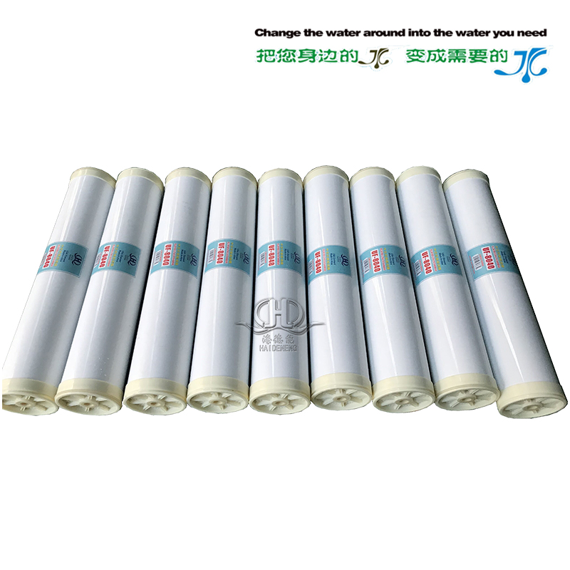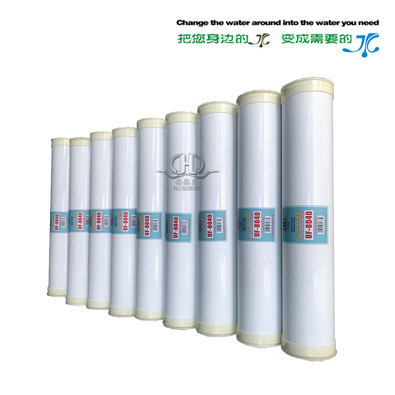根據超濾膜結構的不同形式可分為內壓式和外壓式兩種形式,以上膜是采用內壓,內置式可以直接裝入膜殼里面使用,壽命一般2-3年左右,如更換時只要從膜殼里面拉出來換新的即可。海德能中空纖維超濾膜采用PVC,PVDF, PP等材質。